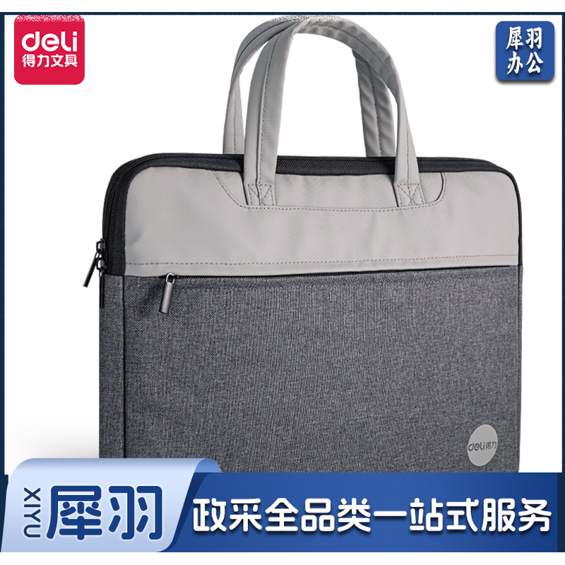 得力(deli)公文包 办公手提袋会议包事务包 加厚大容量商务拉链袋电脑公文包 灰 63755