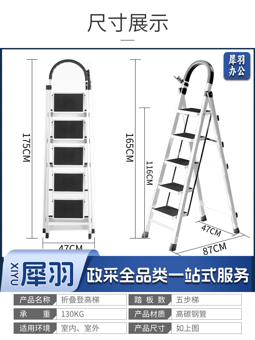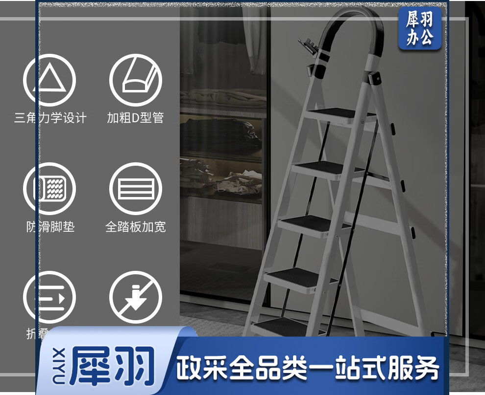 梯子 家用人字梯 多功能梯子 家用扶梯 白色 五步梯子