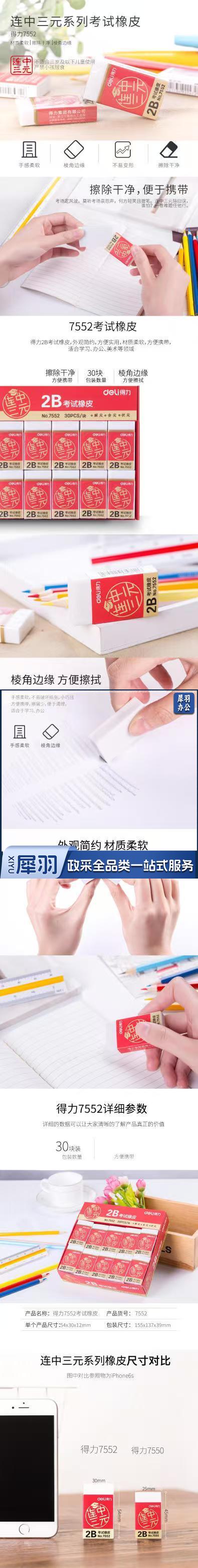 得力7552 橡皮擦 白色2B考试橡皮擦 象皮擦 像皮擦(1个)