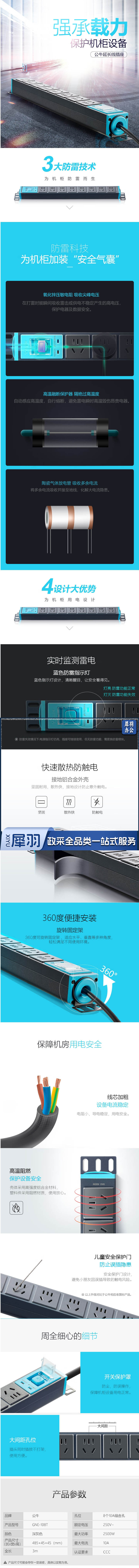 公牛(BULL) GNE-108T 防雷PDU机柜插座/插线板/插排/排插/接线板/拖线板 8位总控全长3米