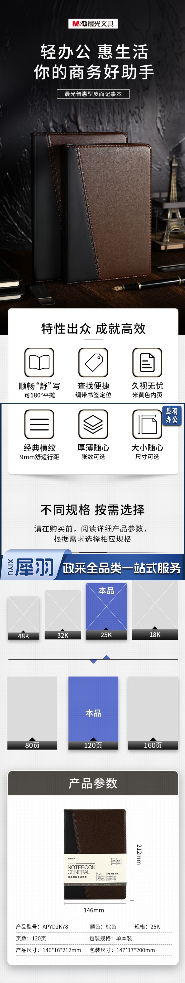 晨光(M&G)文具A5/25K 120张撞色办公笔记本子单本装APYD2K78(NPX)