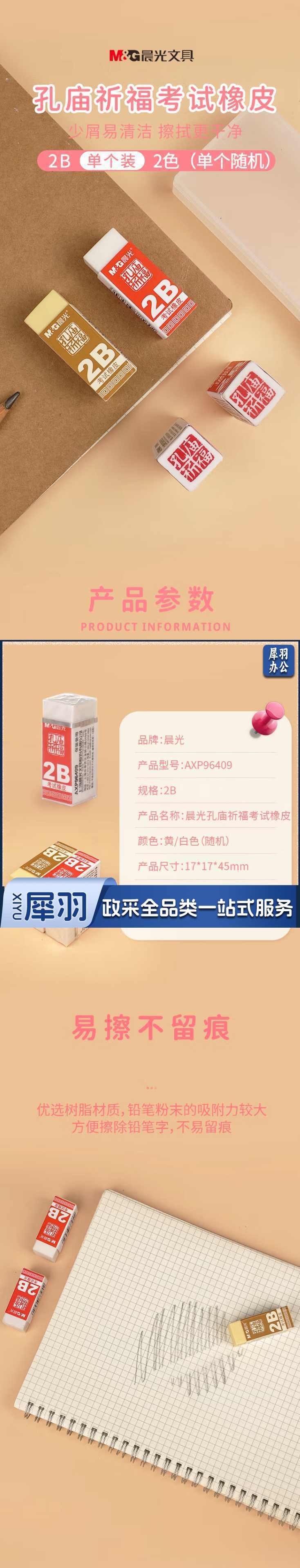 晨光(M&G)文具2B小号橡皮 单个装颜色随机AXP96409(单拍电联)