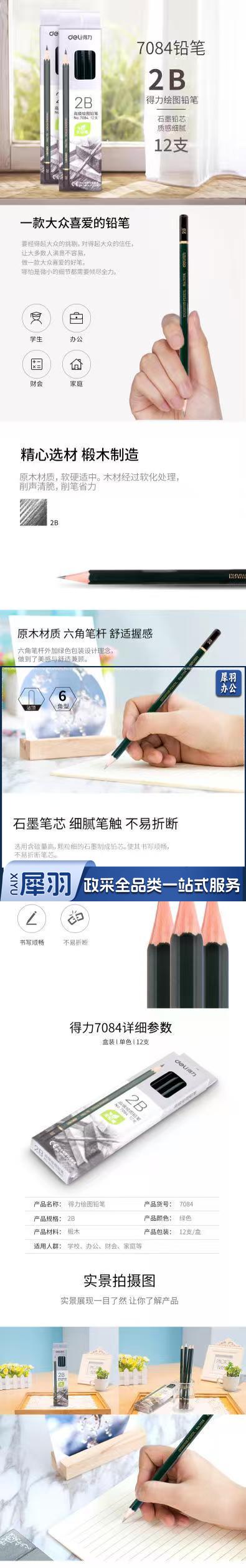 得力 2B高级绘图铅笔 7084(12支/盒)