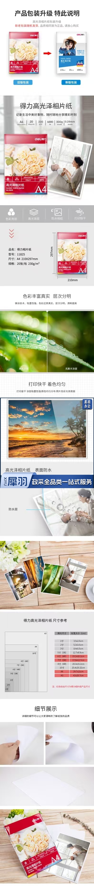 得力11825 高光泽A4照片相片纸 相片纸 照片纸(20张)