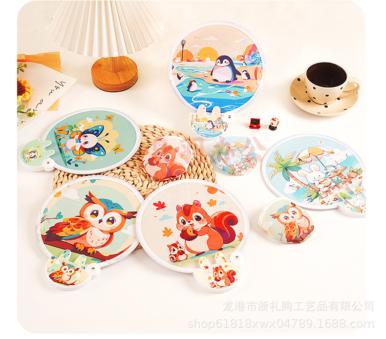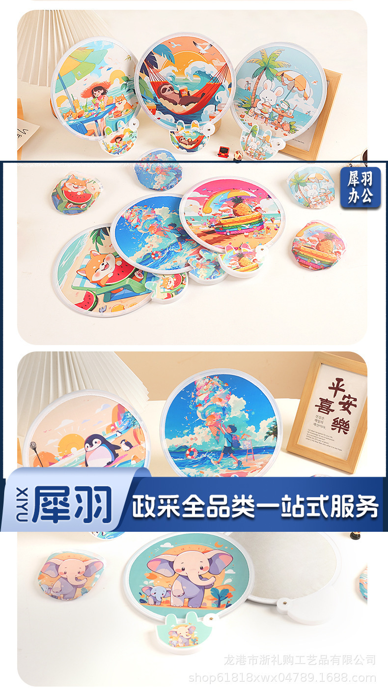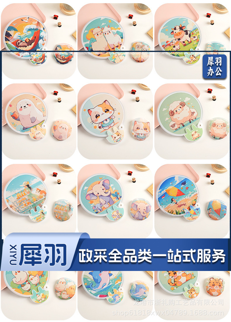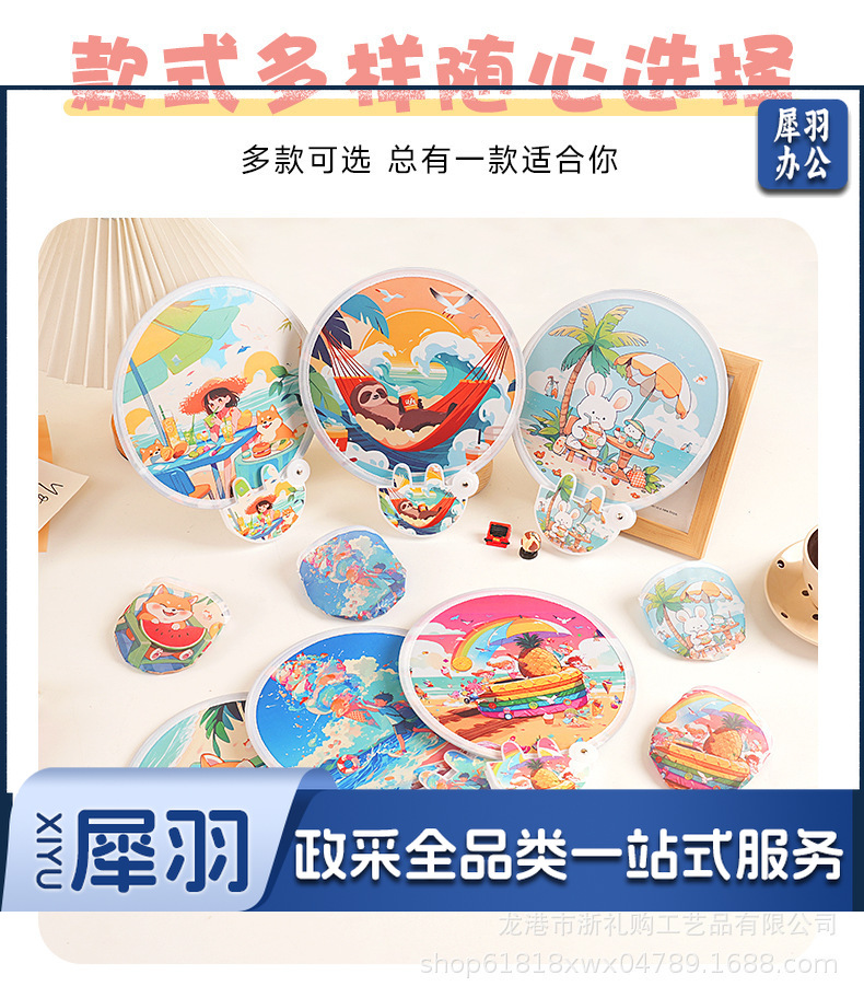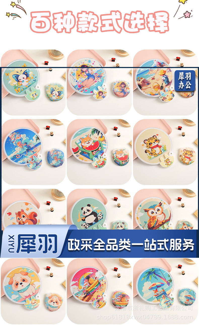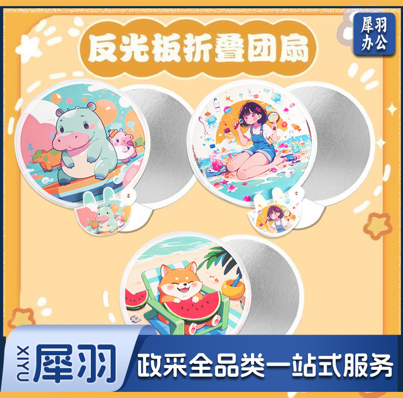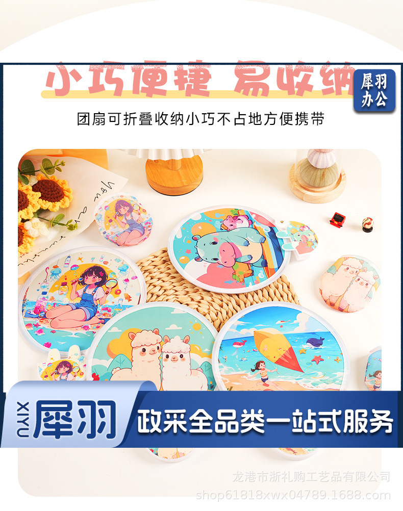 卡通飞盘扇定做折叠扇定制logo涤纶布广告扇团扇应援扇网红反光板款式随机发货(图案百款)
