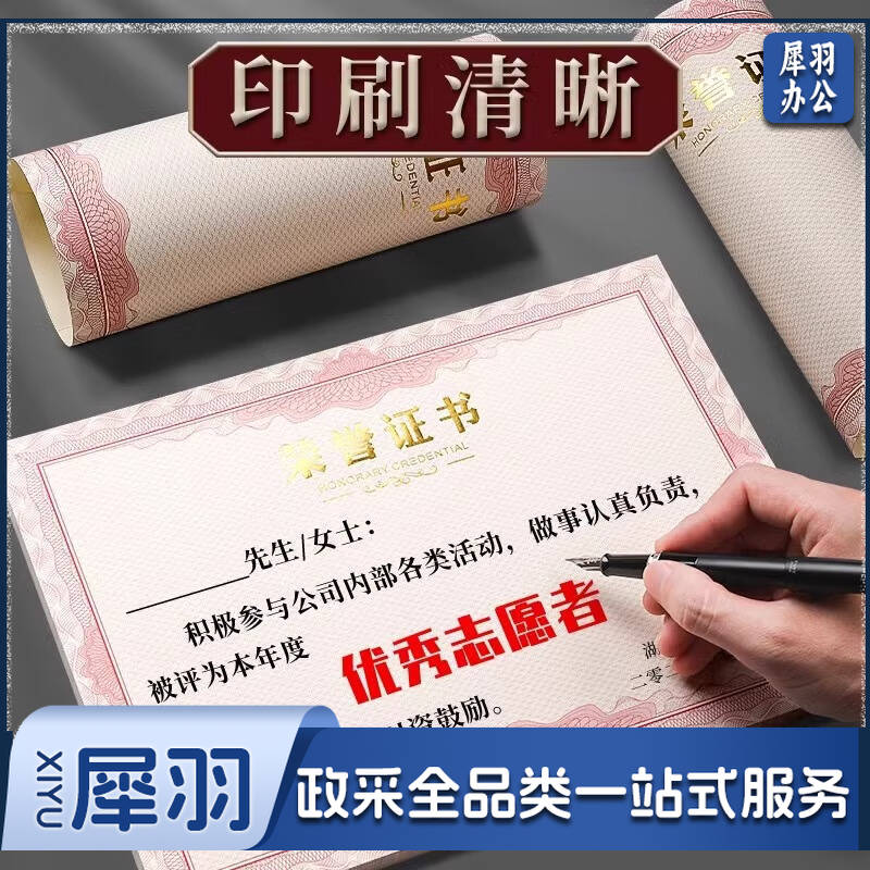 荣誉证书内芯12k加厚分享白奖状获奖证书内页可打印表扬信优秀员工荣誉证奖状纸大12开内芯-20张装
