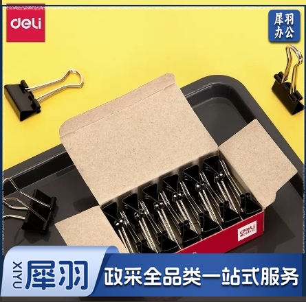 得力文具黑色长尾夹 954系列金属铁票夹 燕尾夹 办公学习资料夹子 9545纸盒款5# 19mm(12只/盒) 黑色