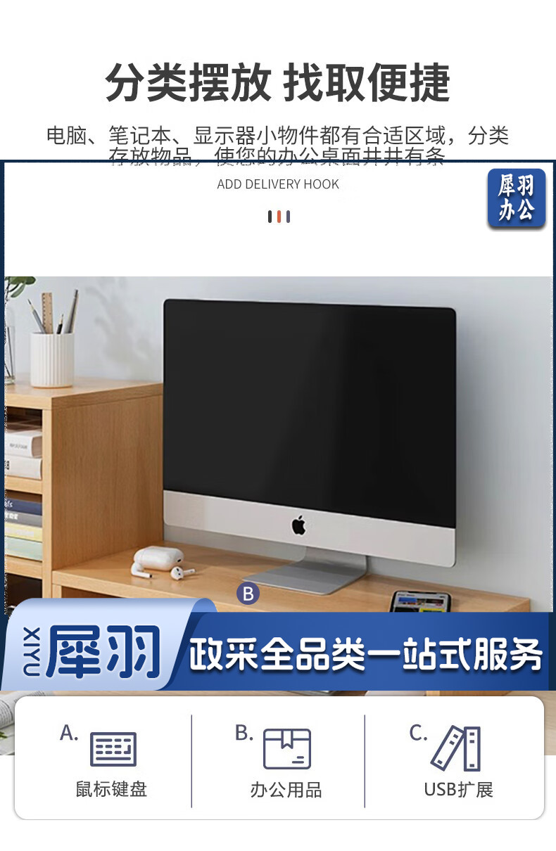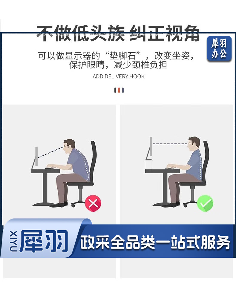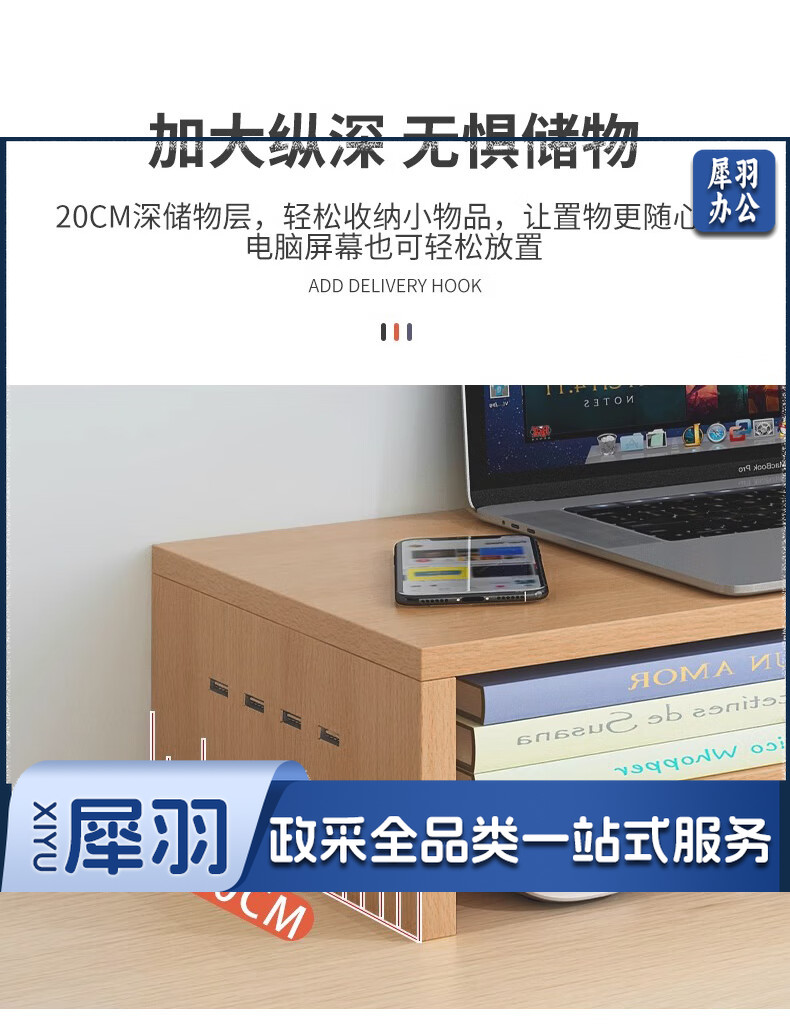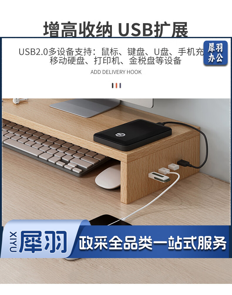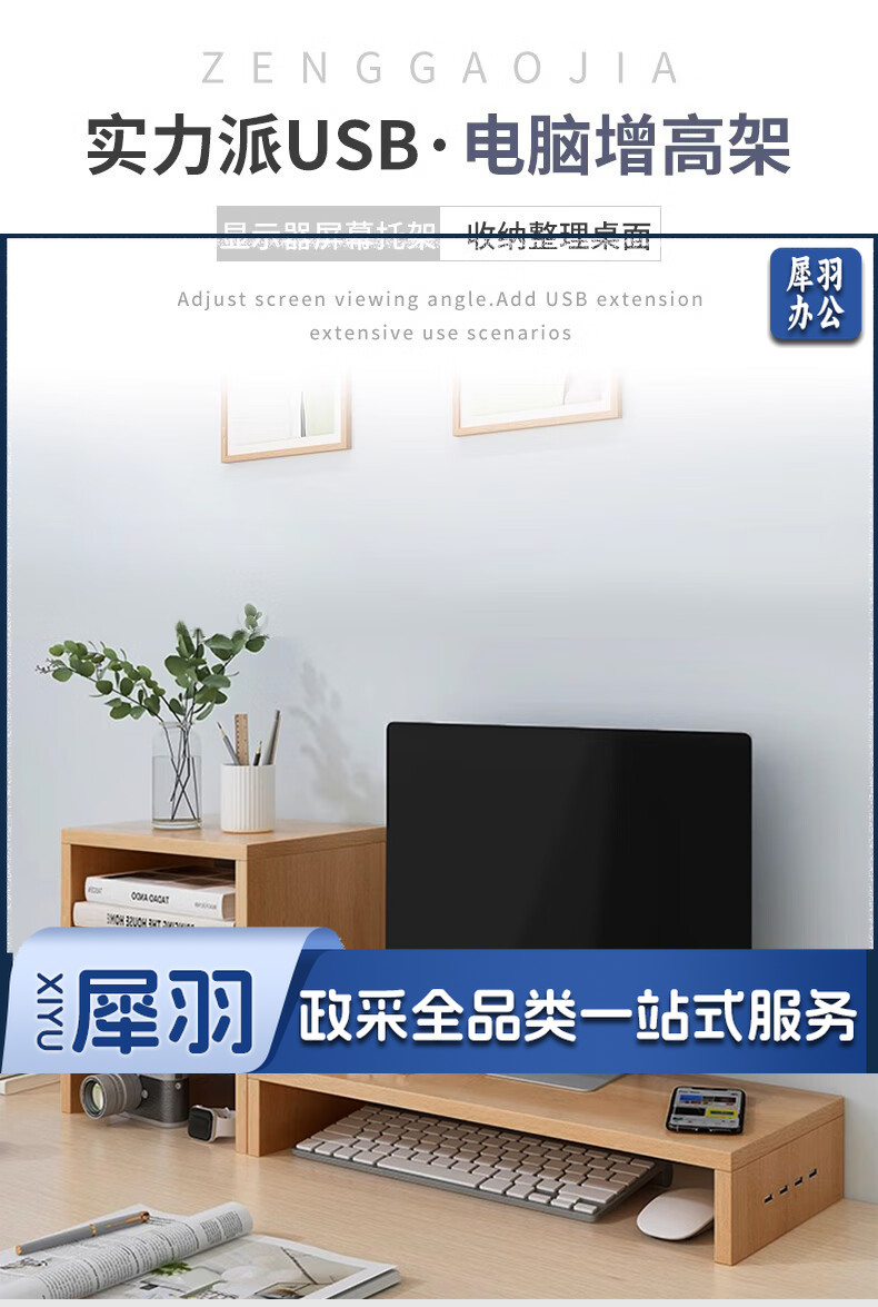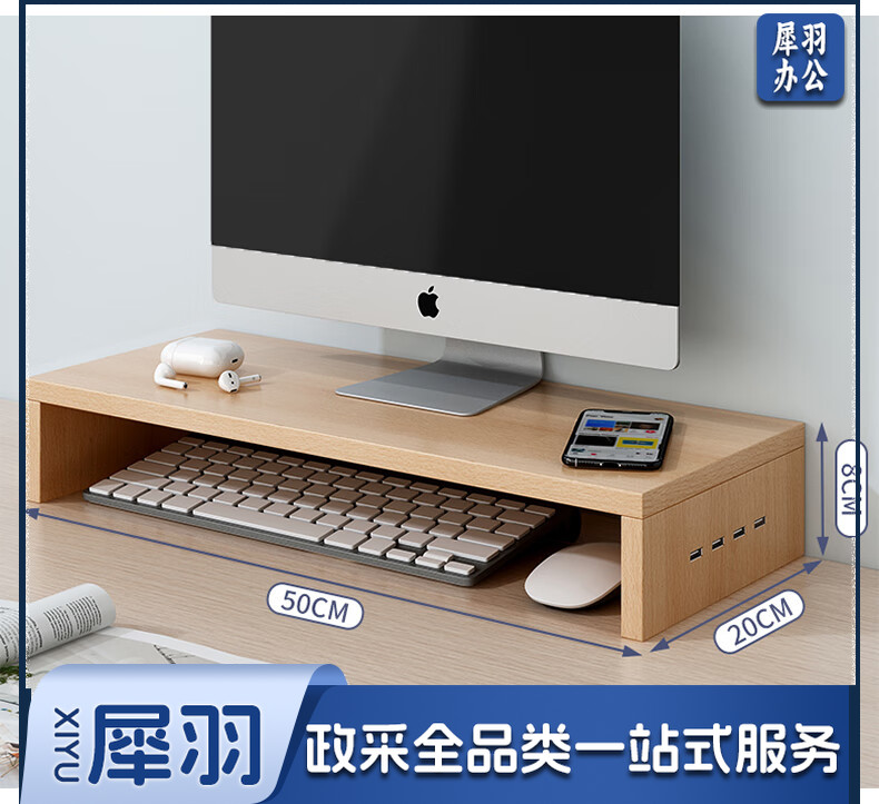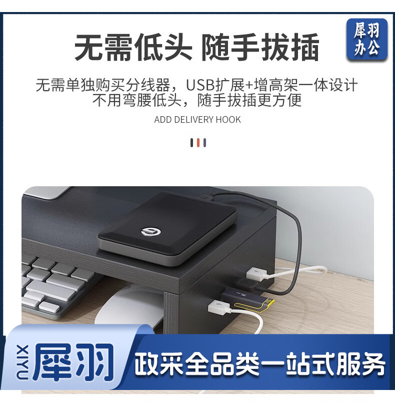电脑增高架单层USB显示器托架垫高底座支架桌面收纳架办公置物架