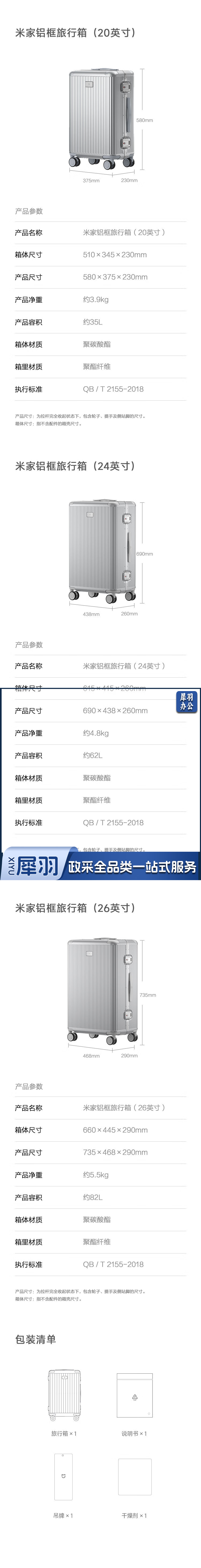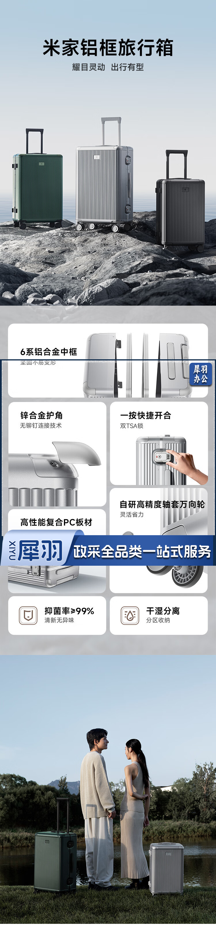 米家雷总同款小米行李箱20英寸铝框拉杆箱可登机箱绿色旅行箱男女