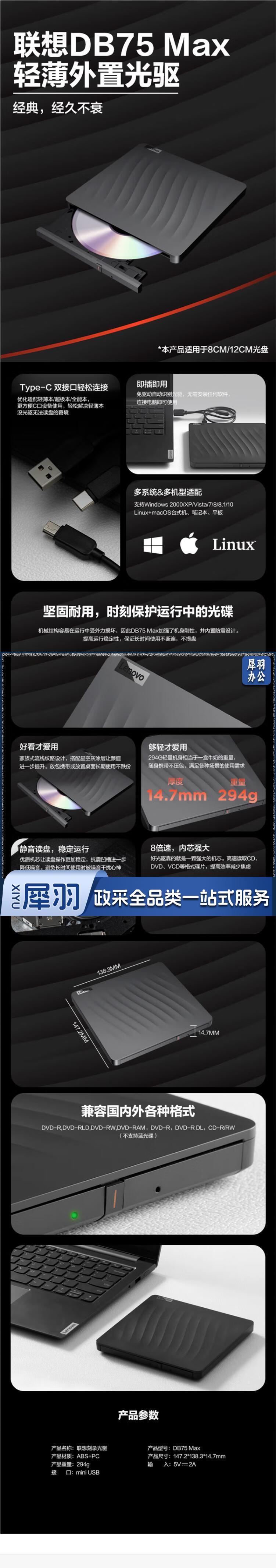 联想(Lenovo) DB75MAX 外置光驱DVD刻录机 8倍速 黑色(单位 个)