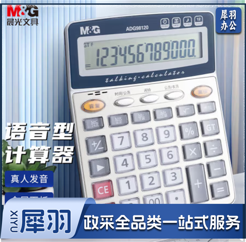 晨光(M&G)文具金属面板计算器 12位大屏幕计算器 学生/办公通用语音型桌面计算机 银色单个装 ADG98120