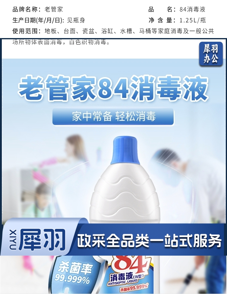 老管家 84消毒液衣物漂白除菌剂含氯消毒杀菌剂蔬果消毒水1.25L