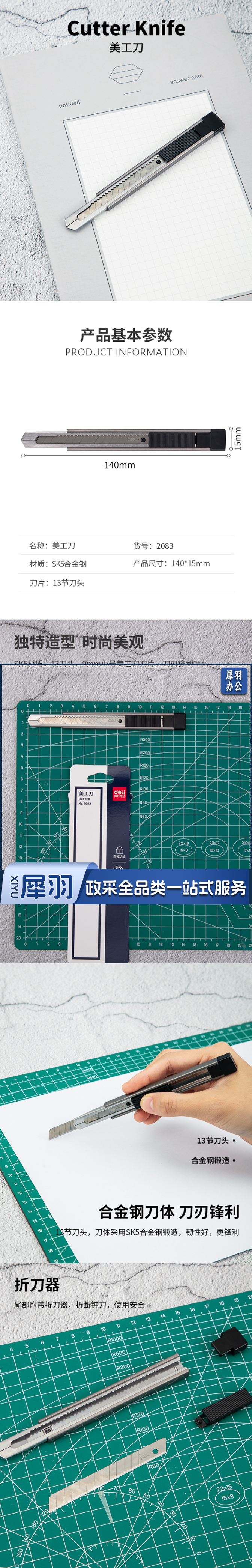 得力 2083 小号自锁美工刀 9mm裁纸刀/壁纸刀 灰色