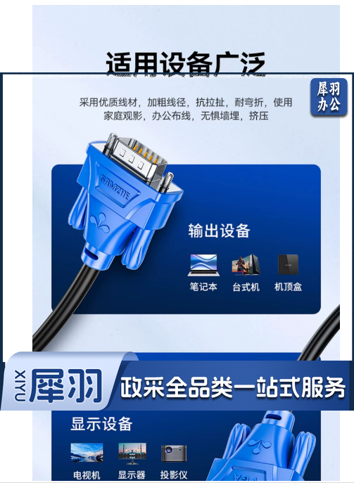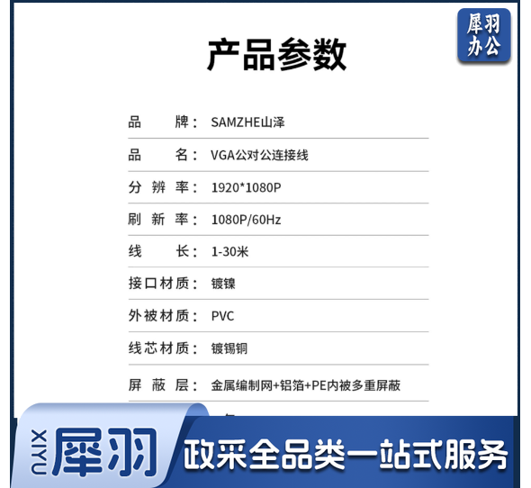 山泽VGA线标准款台式电脑显示器连接线电视机投影仪视频转换线1.5米