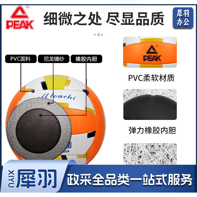 匹克PEAK比赛排球5号经典机缝PVC排球儿童男女学生中考训练排球YQ11301白/橙/黄