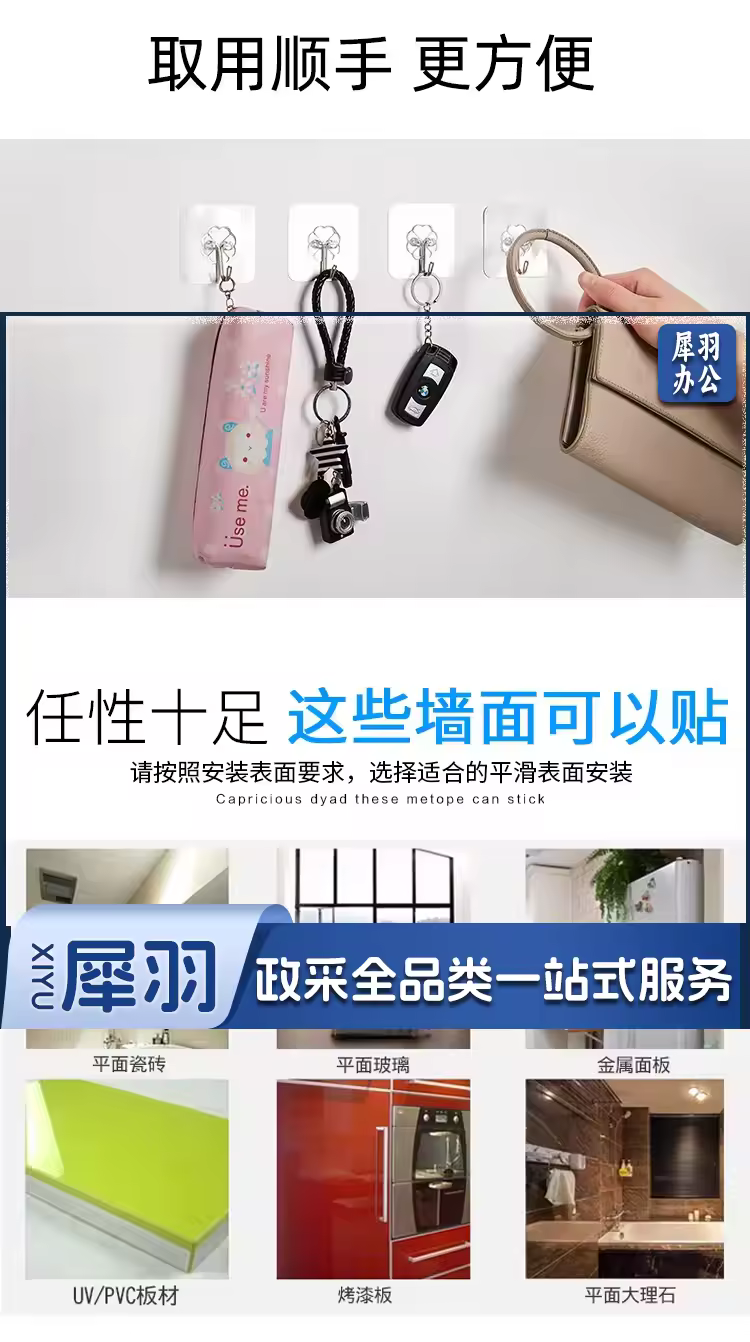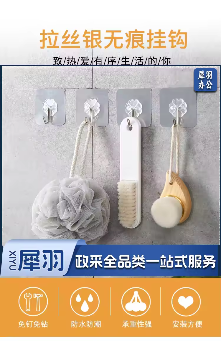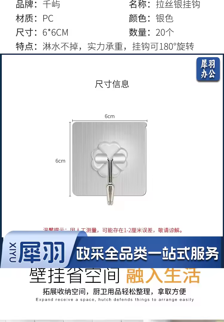 20只装拉丝银挂钩粘钩无痕门后粘钩衣帽厨房浴室衣服挂钩子
