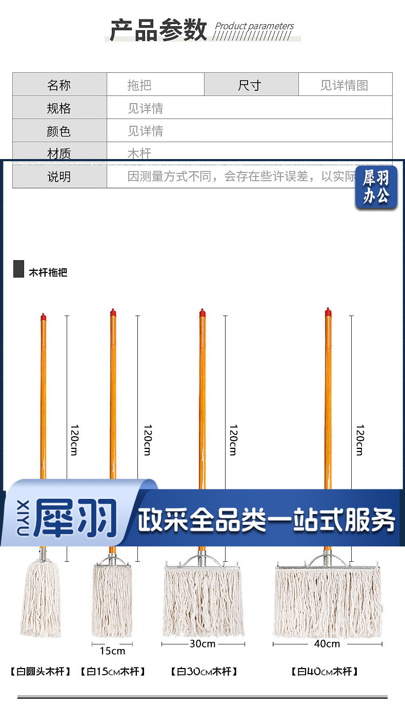 【白圆头木杆】木杆拖把棉线大堂老式墩布尘推拖布工厂 物业吸水拖把
