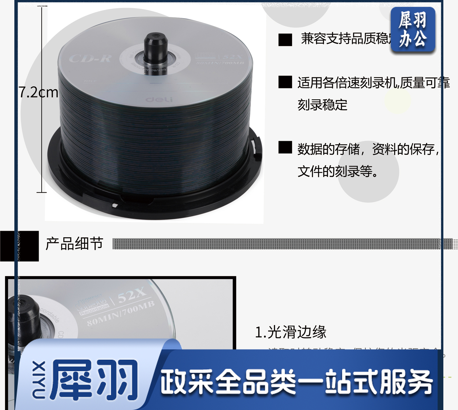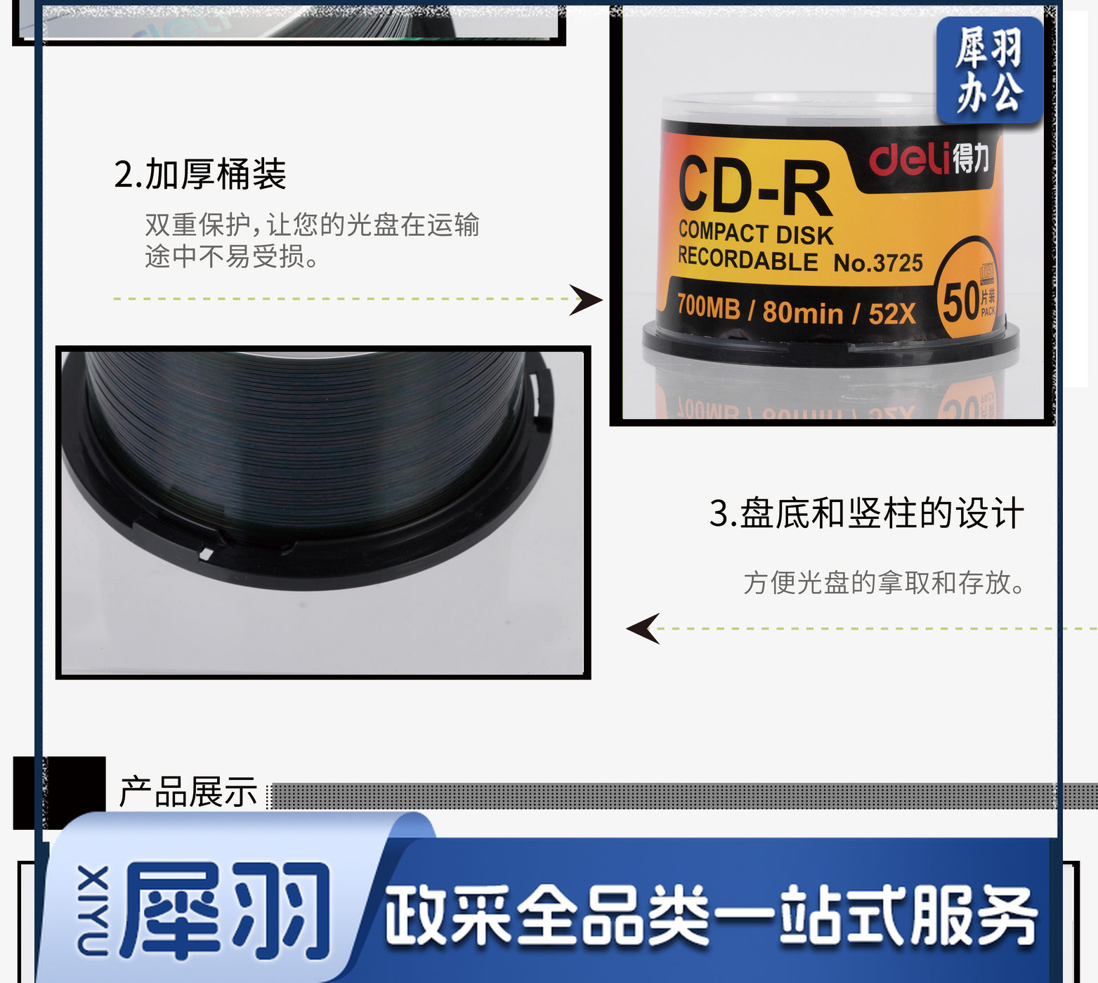 得力光盘CD-R 雾银色 700MB/片 (50片/筒) 3725