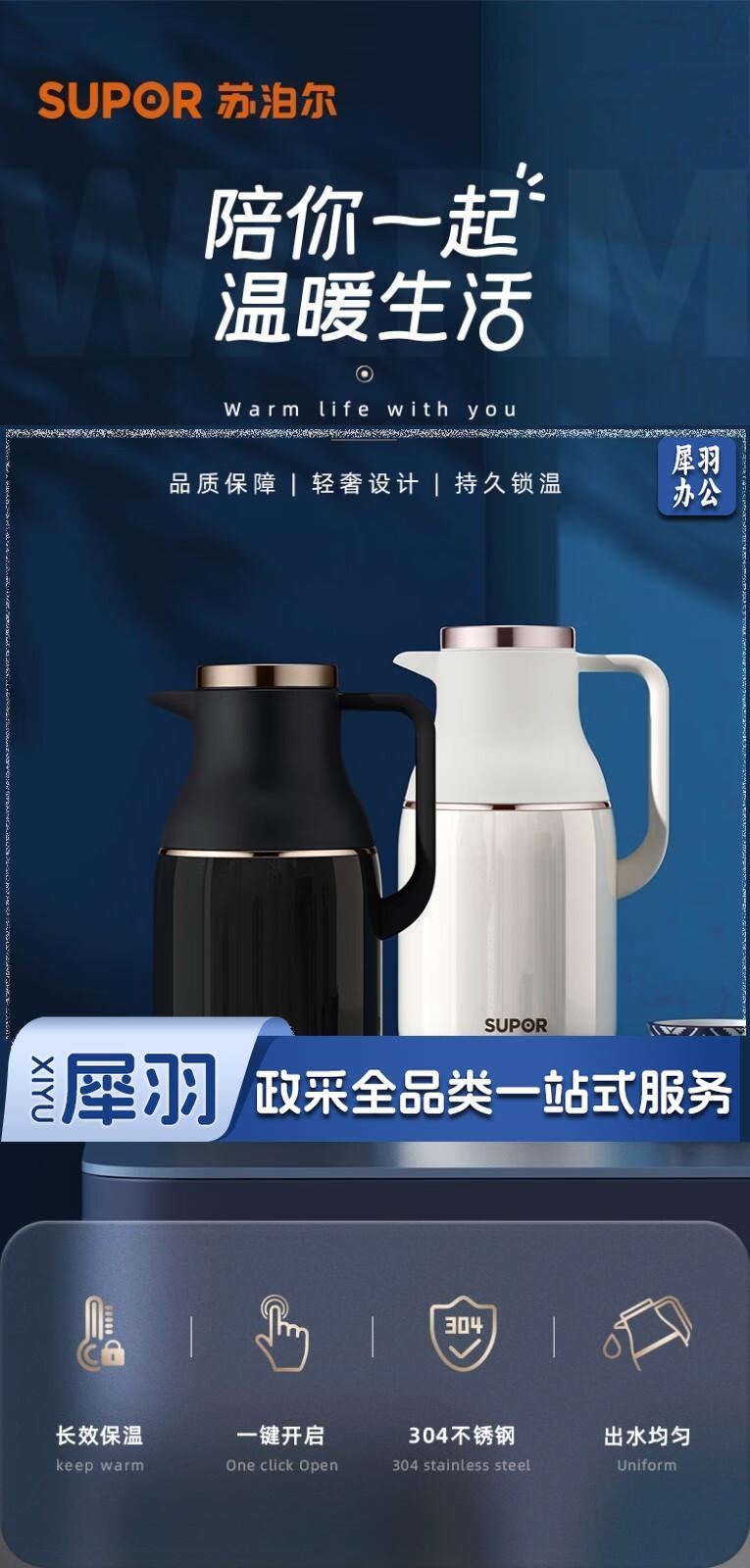 苏泊尔(SUPOR) 保温壶家用大容量热水壶304不锈钢暖水壶保温水壶热水瓶 2L容量象牙白 KC20FZ50烹调电器