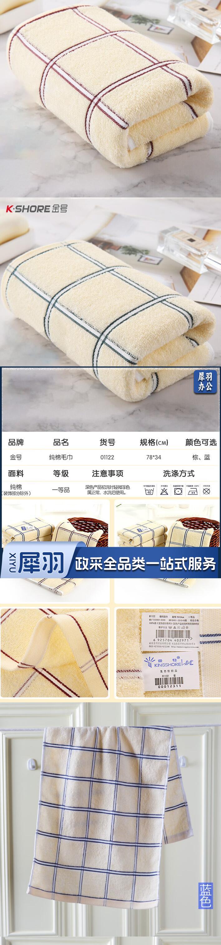 金号 纯棉毛巾 01122素色吸水面巾梯段柔软吸水 78*34cm 1条