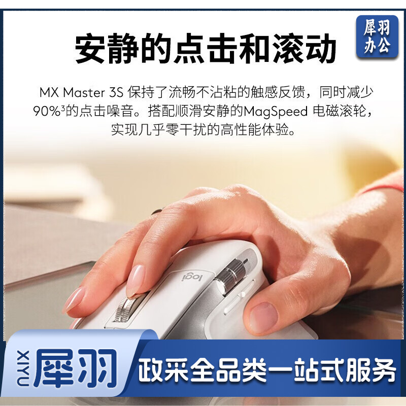罗技(Logitech)大师系列 MX Master 3S 无线蓝牙鼠标 商务办公轻音鼠标 人体工学 石墨黑商用版