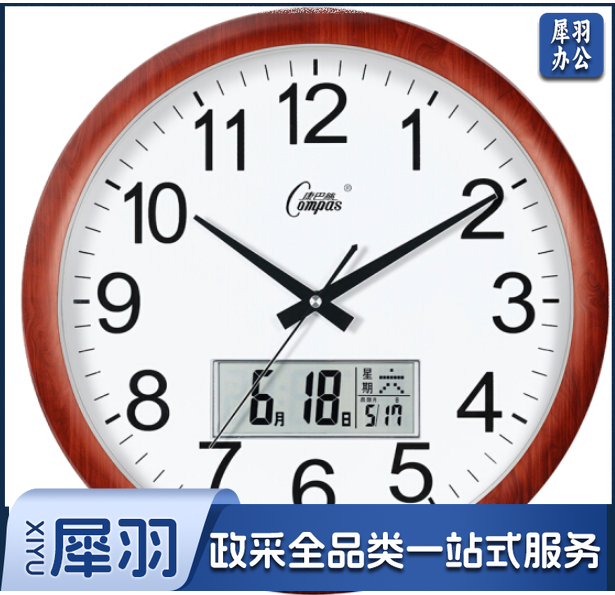 康巴丝(Compas) 38cm 挂钟 15英寸 万年历钟表挂 石英钟挂表 木纹日历款