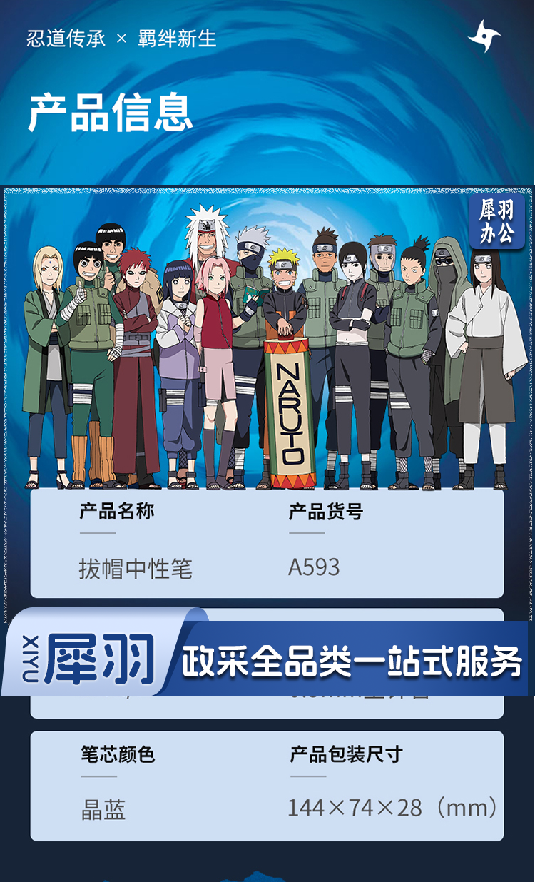 得力A593火影忍者学生中性笔0.5mm全针管(黑)(支)