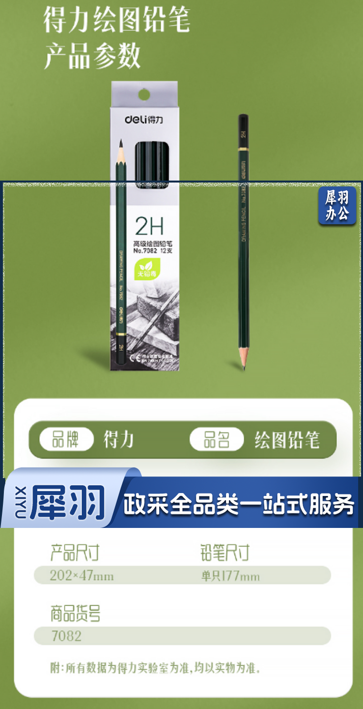 得力7082-2H高级绘图铅笔(绿色)(12支/盒)