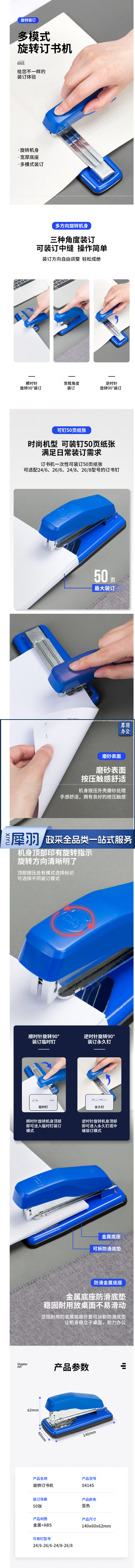 得力(deli)0414S 12#50页旋转式订书机 蓝色 单位:台