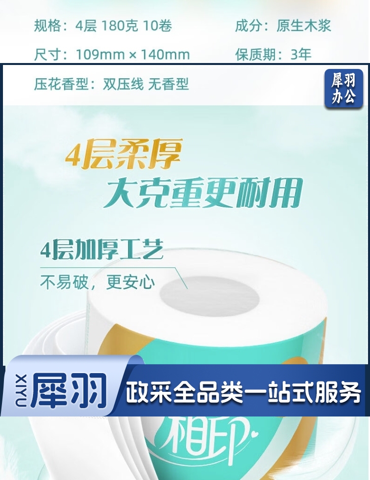 心相印卷纸4层180g*10卷卫生纸巾 大克重卷筒纸