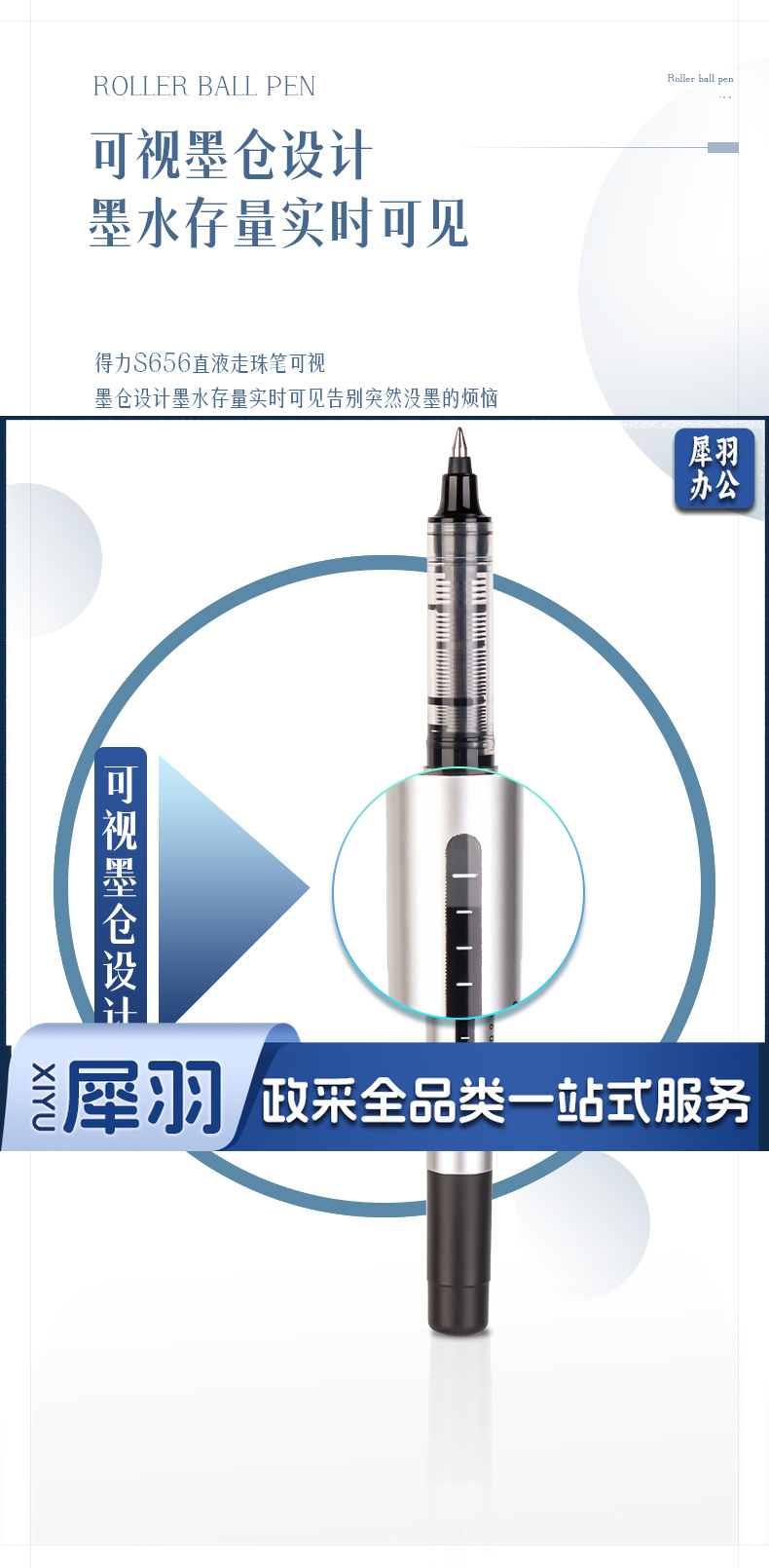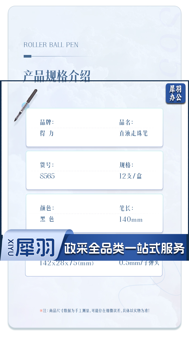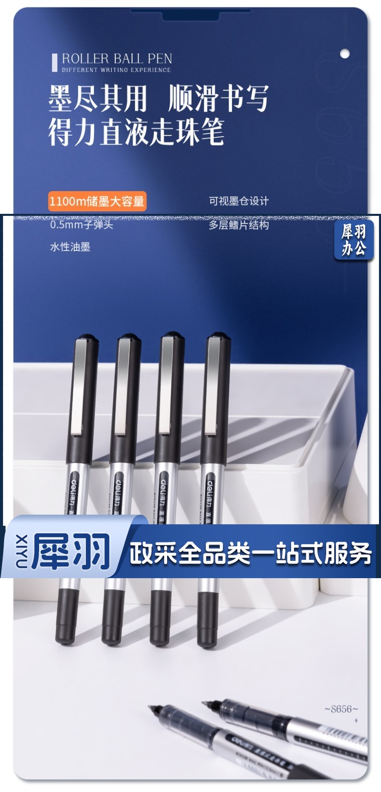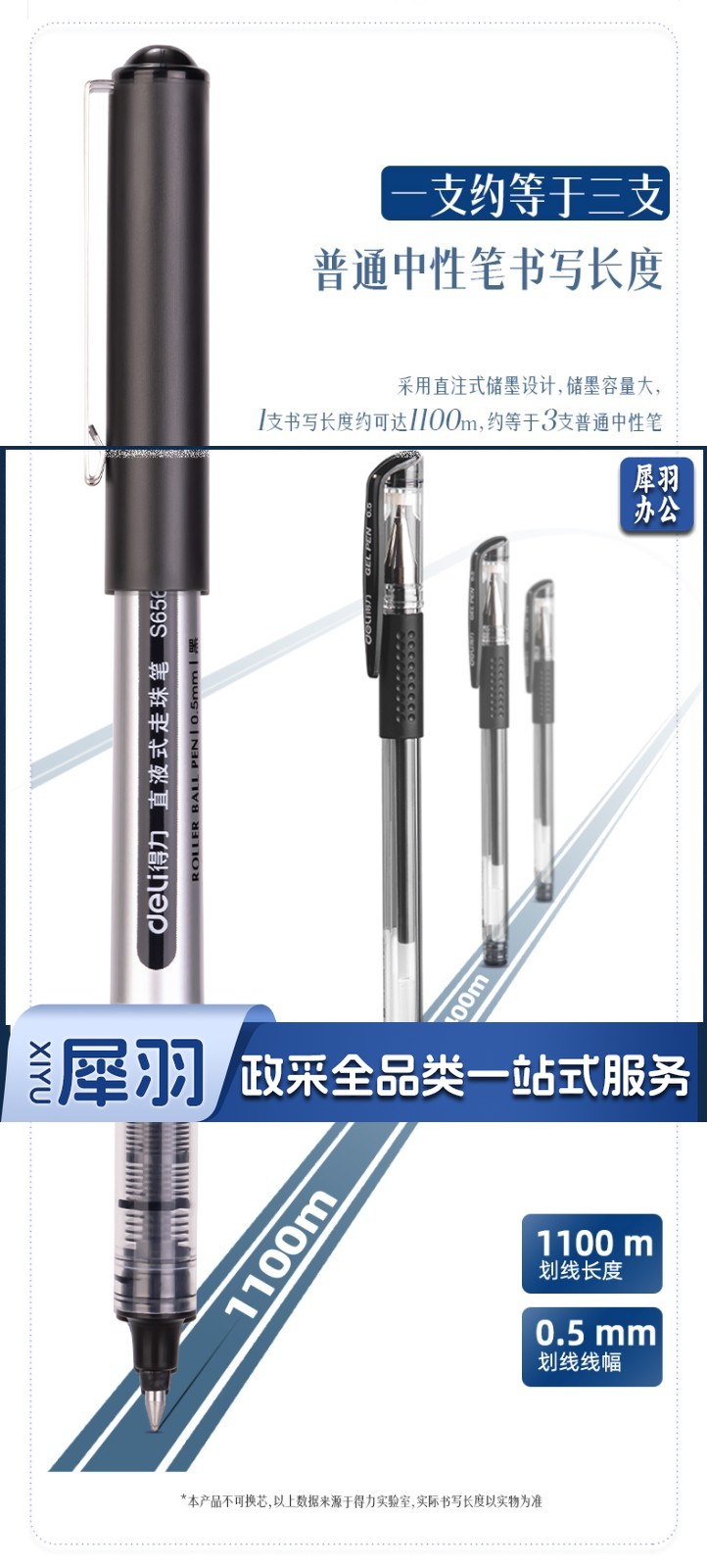 得力S656宝珠笔0.5mm子弹头(黑)12支/盒