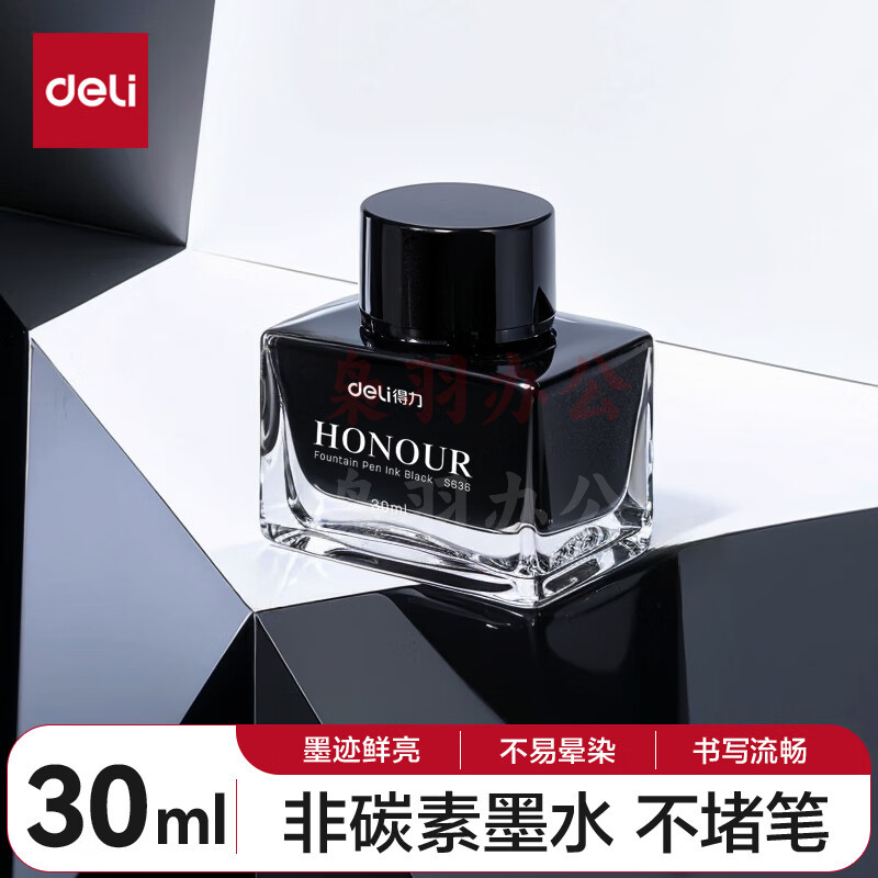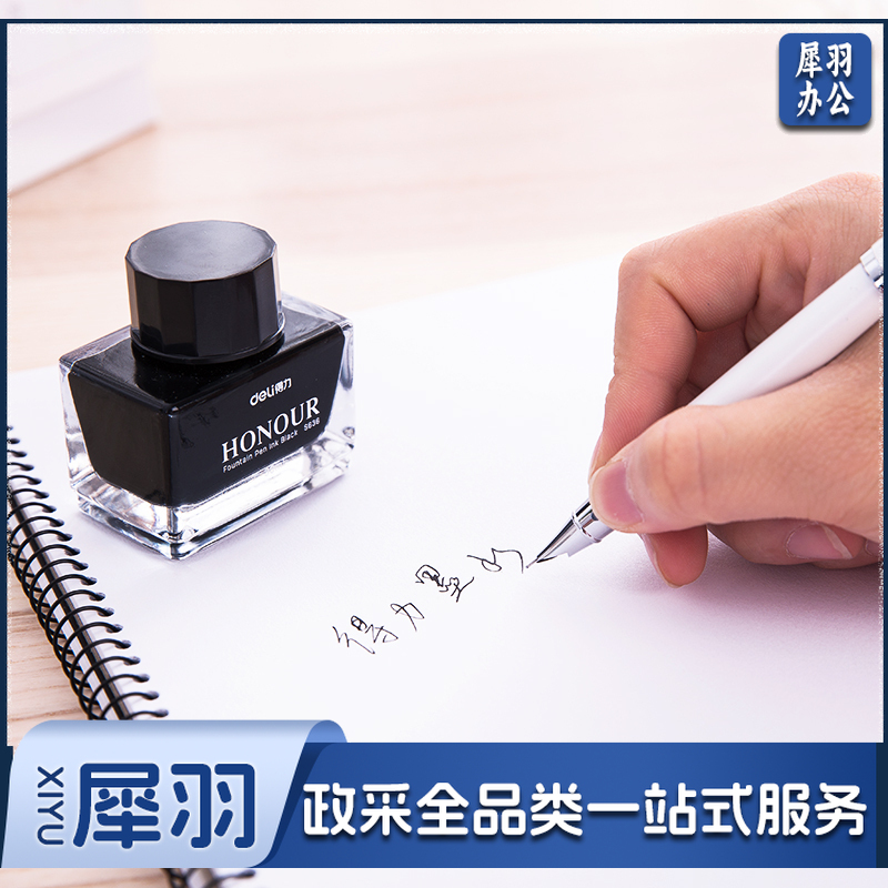 得力(deli)钢笔墨水非碳素不堵笔 学生练字商务办公30ml黑色瓶装 S636