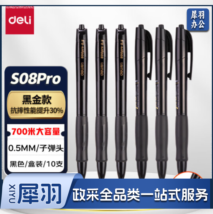 得力(deli)S08升级款 大容量弧度收口按动中性笔办公笔水笔 0.5mm子弹头黑色 10支/盒S08Pro-10