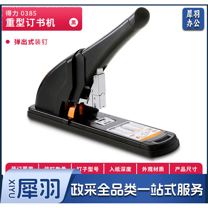 得力(deli)210页省力重型大订书机/订书器 大号加厚重型订书机 适配23/6~23/24订书钉 办公用品 黑色0385