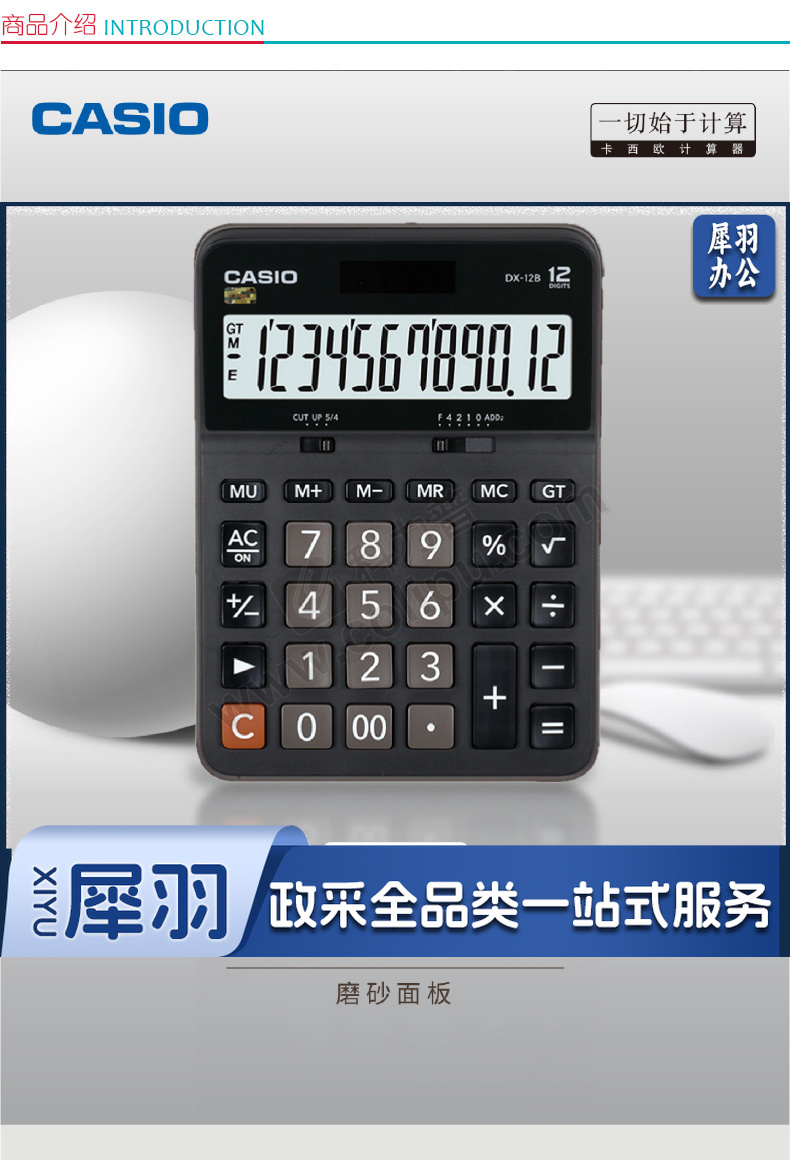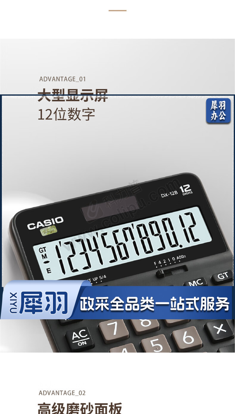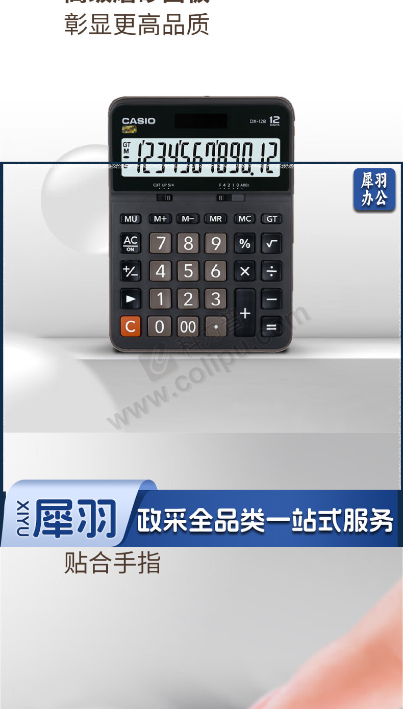 卡西欧 CASIO 12位数字显示办公普通计算器 DX-12B 中号 10个/盒 (新老包装更替)DC
