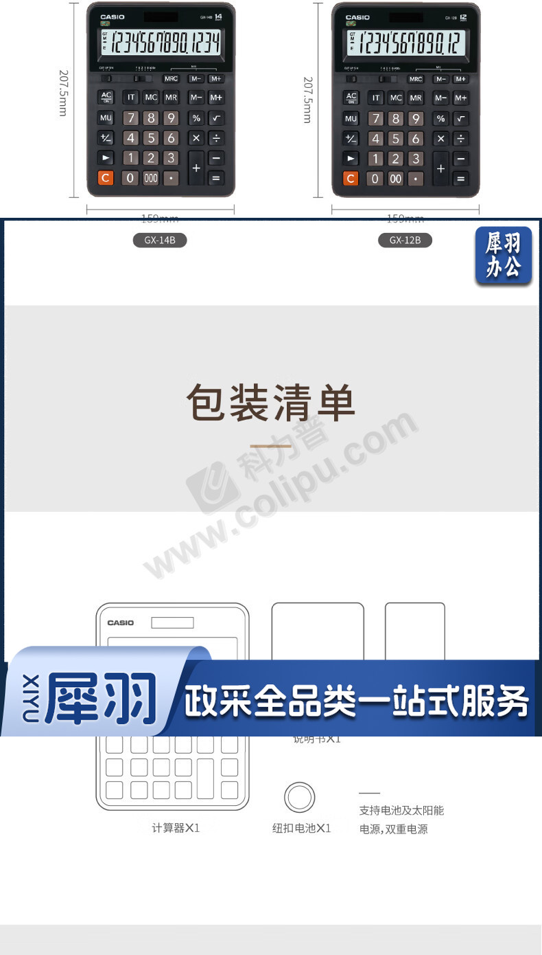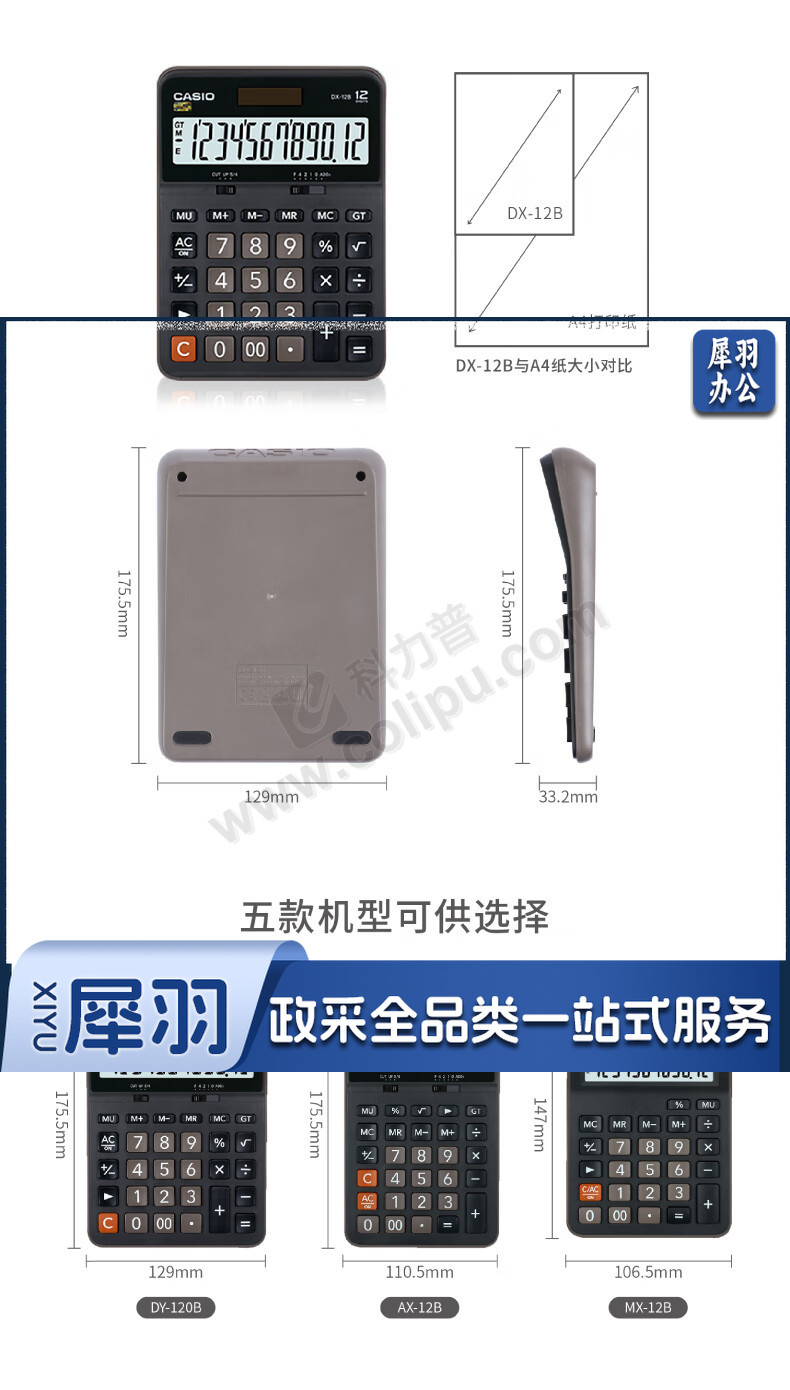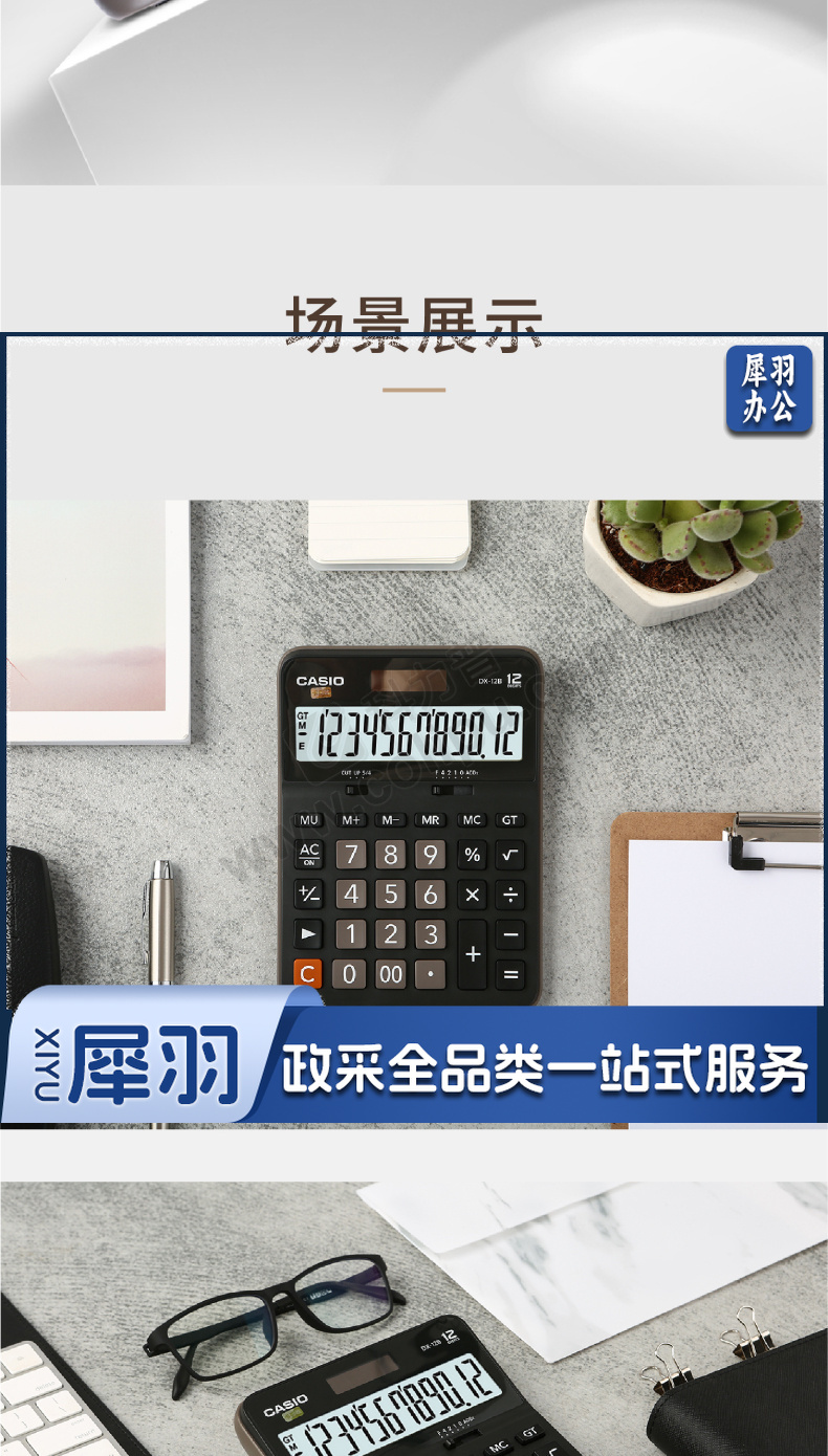 卡西欧 CASIO 12位数字显示办公普通计算器 DX-12B 中号 10个/盒 (新老包装更替)DC