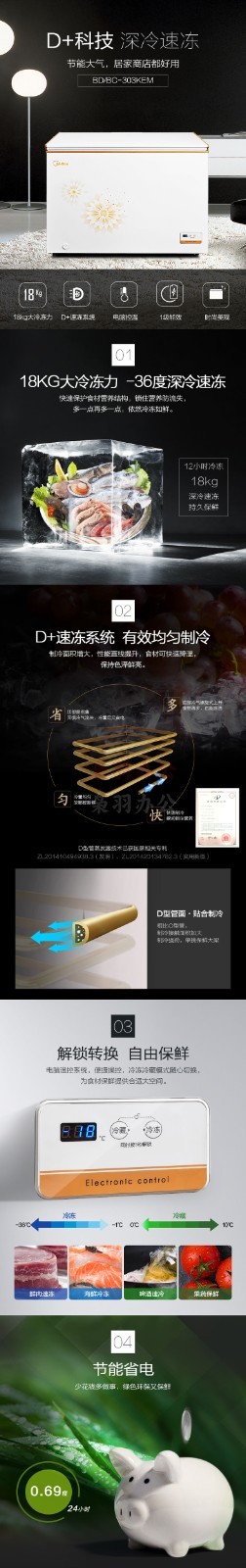 美的(Midea) 商用卧式冷柜大容量冰柜冷藏冷冻柜节能省电大冰柜单温卧式电冰箱 电子控温 303升冰柜 BD/BC-303KEM