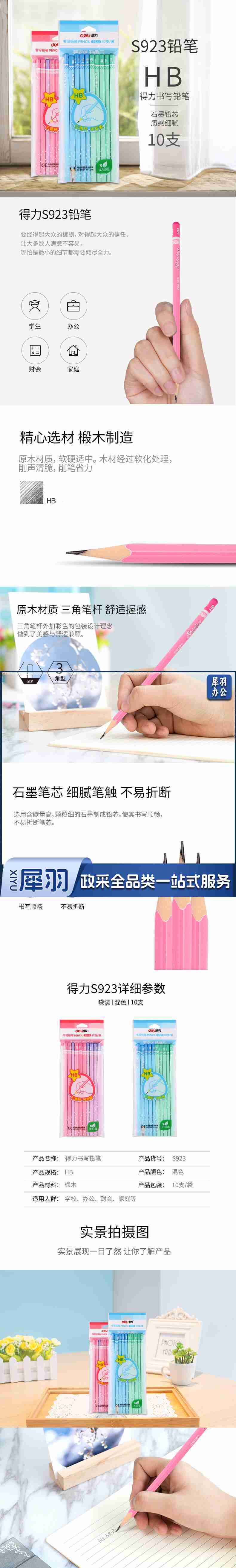 得力S923-HB书写铅笔(混)(10支/包)...