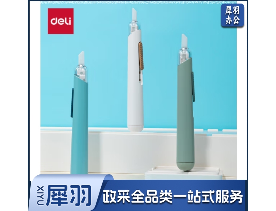得力(deli)笔型陶瓷美工刀 可插笔筒 圆角安全刀头 快递开箱刀 创意便携裁纸刀 白色TD261