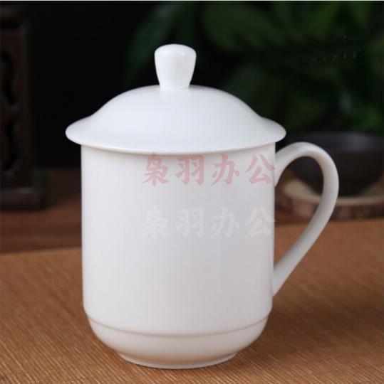 带盖茶杯 办公杯陶瓷杯纯白瓷盖杯商务会议杯宾馆酒店开会水杯/定制Logo