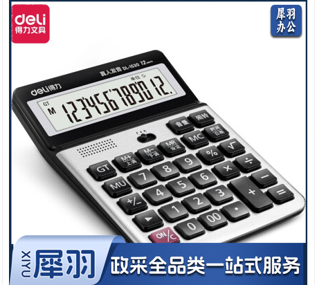 得力(deli)大屏幕12位数语音计算器计算机 办公用品 银灰色1530