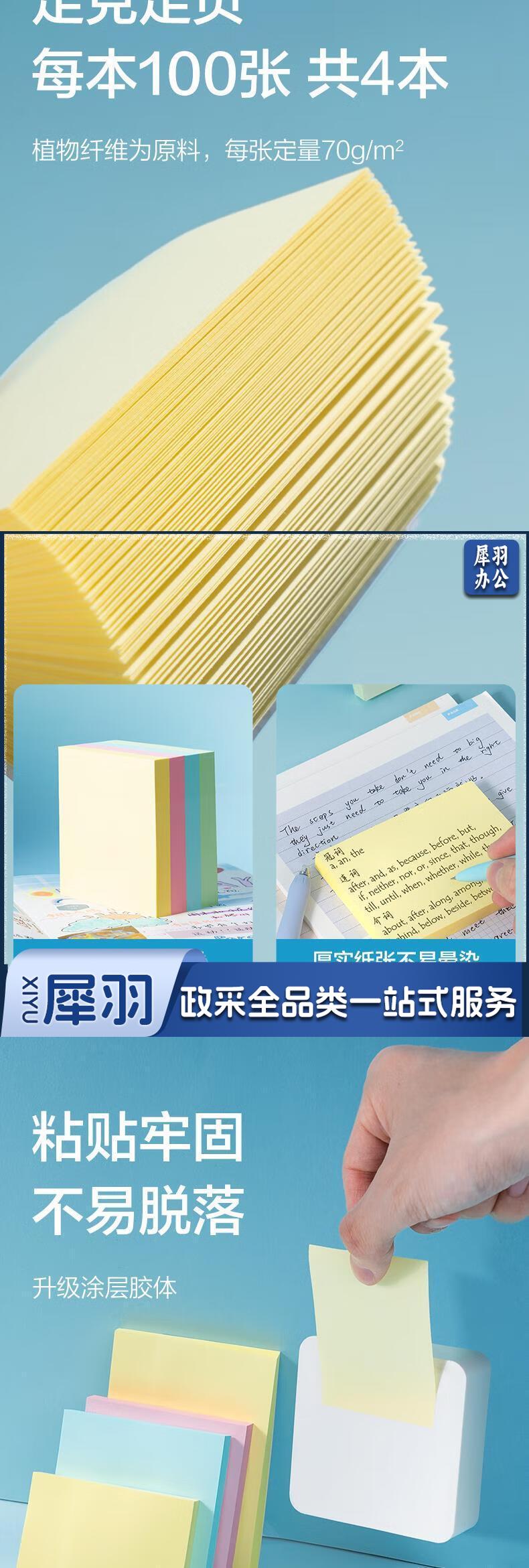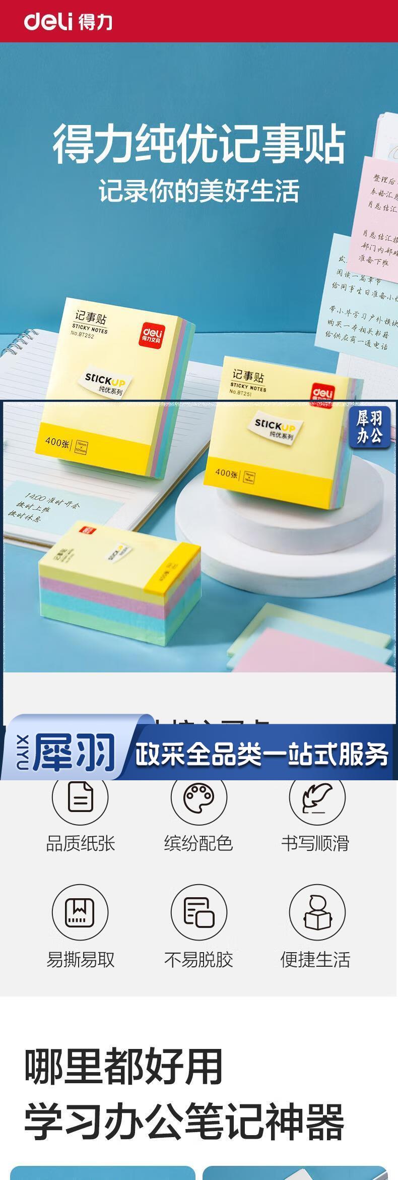 得力(deli)400页4色简约便利贴便签纸 76*76mm便签本/记事贴/自粘留言本 办公用品 BT251