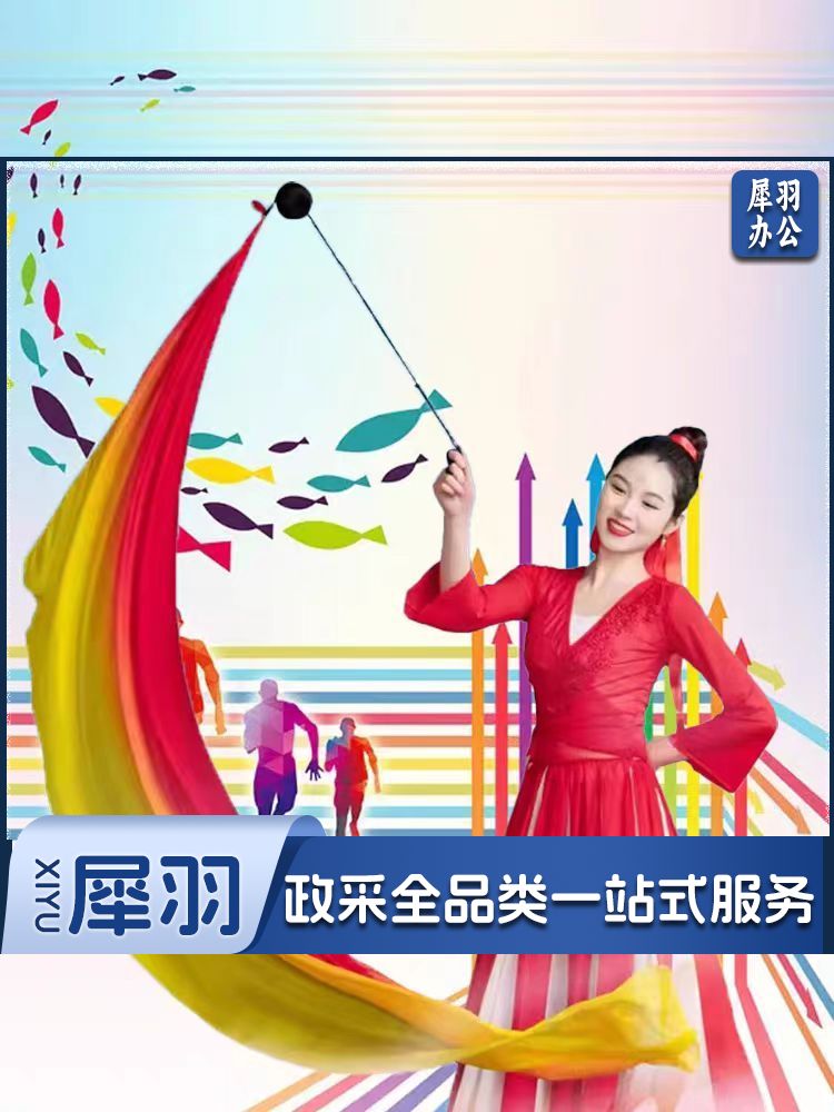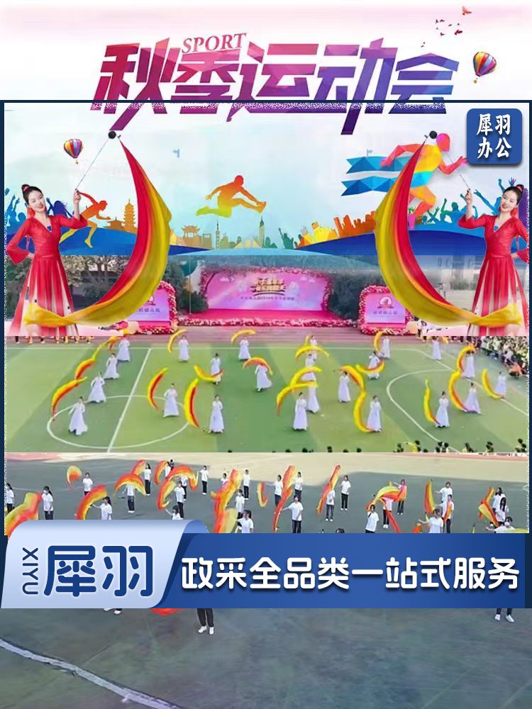 运动会开幕式纱球舞甩纱巾彩绸彩带仿真丝(黄橙红长2米含沙球)