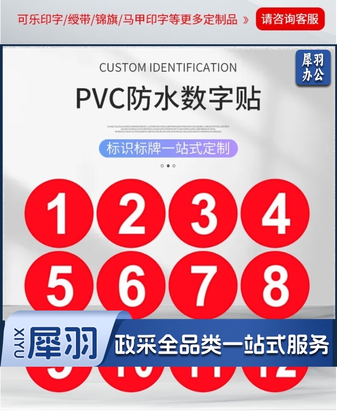 定制PVC防水号码贴 餐桌号比赛选手号数字贴