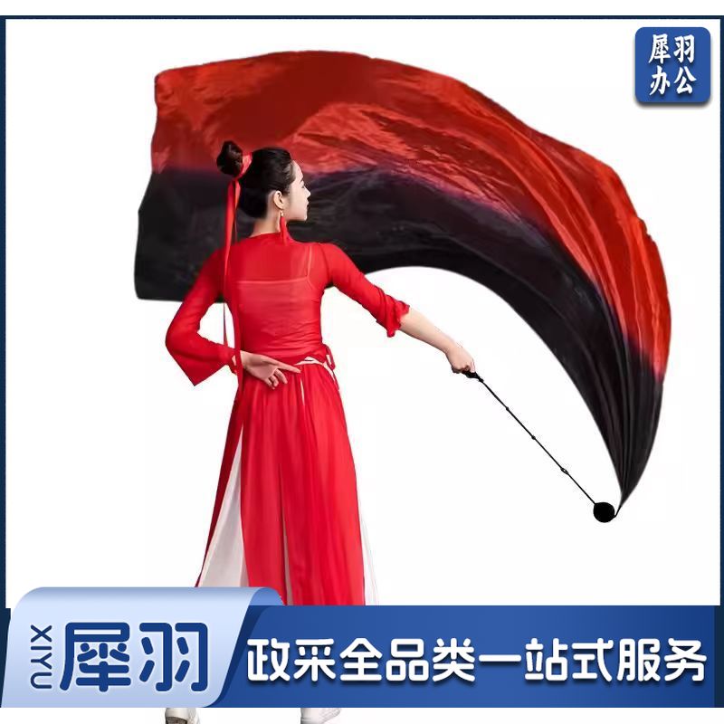 运动会开幕式纱球舞甩纱巾彩绸彩带仿真丝(黑红长2米含沙球)