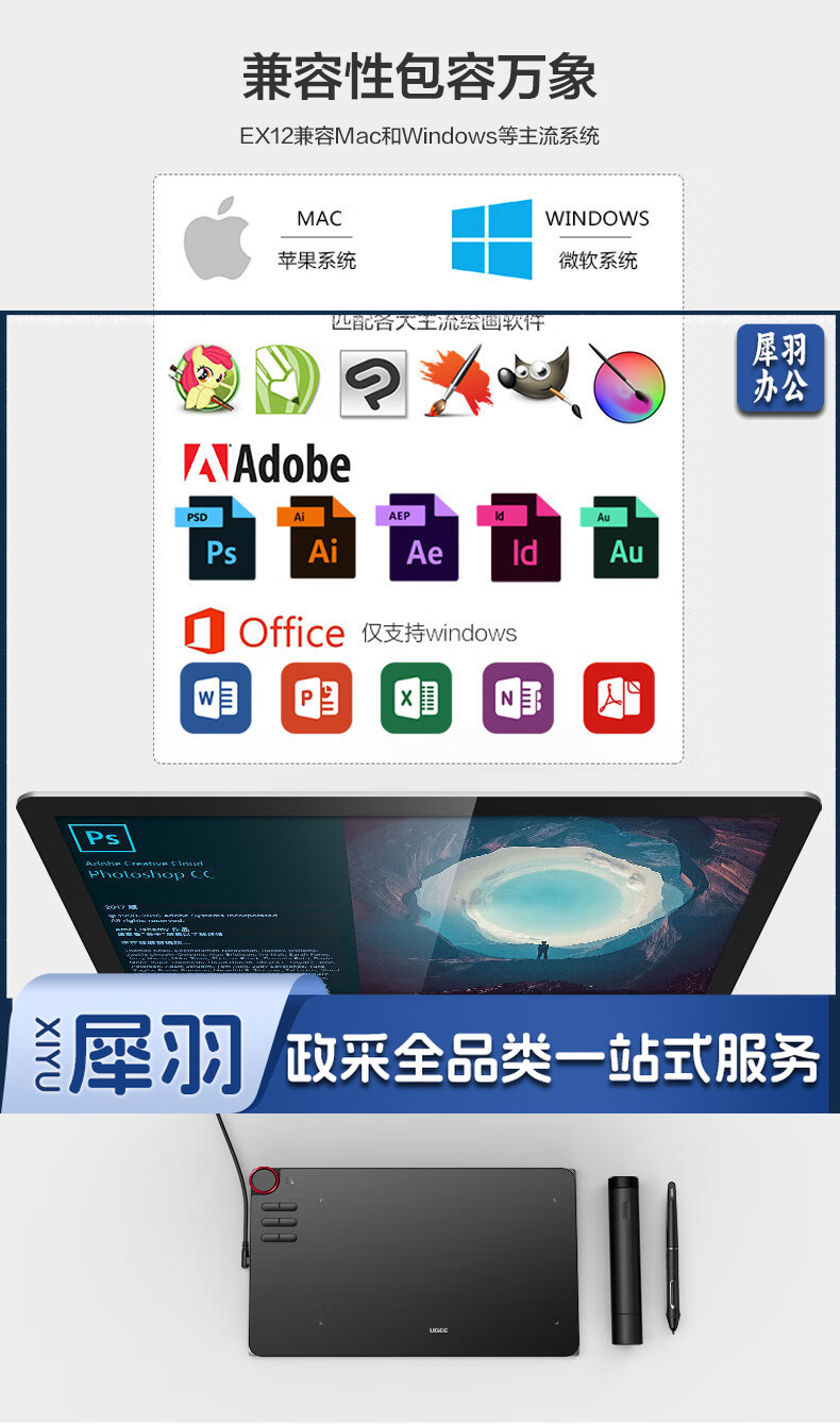 友基(UGEE)数位板手绘板手写板画板手写板连电脑写字板网课手写板绘画板电子画板液晶手写板 EX12