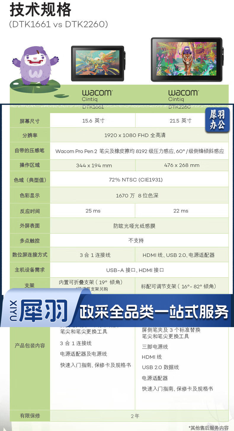Wacom数位屏 手绘屏 21.5英寸电子绘画屏 手绘板 手写板 新帝Cintiq创意液晶数位板 DTK2260