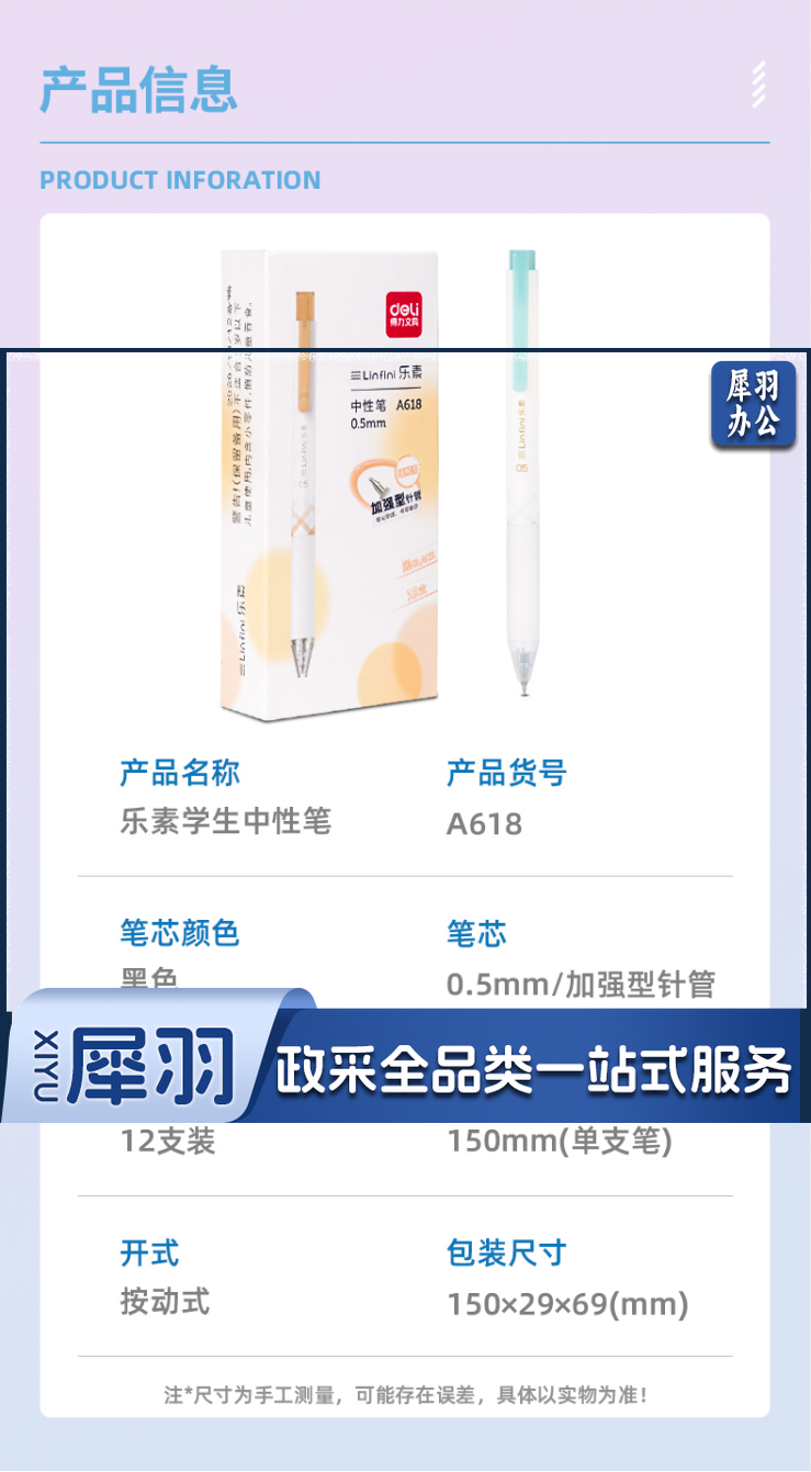 得力A618学生中性笔0.5mm按动加强型针管(黑)(支)