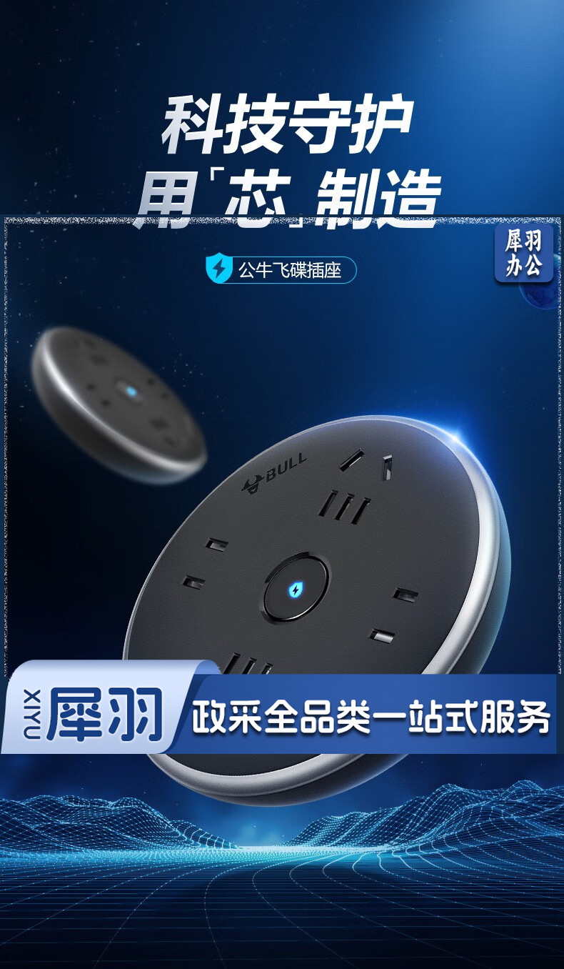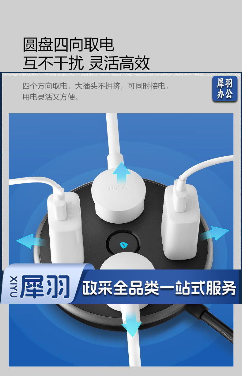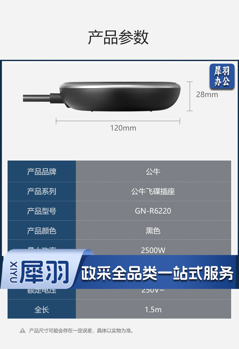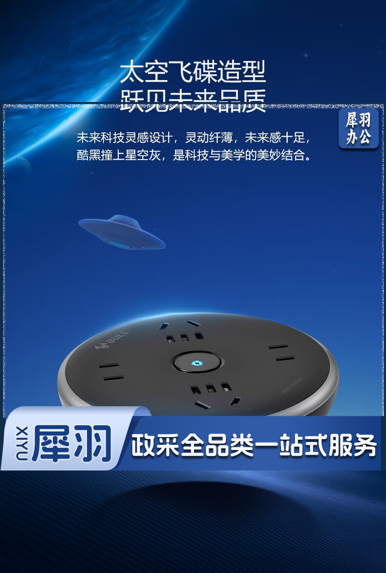 公牛(BULL) GN-R6220 飞碟插座 4位总控插排/插线板/接线板 黑色 全长1.5米.