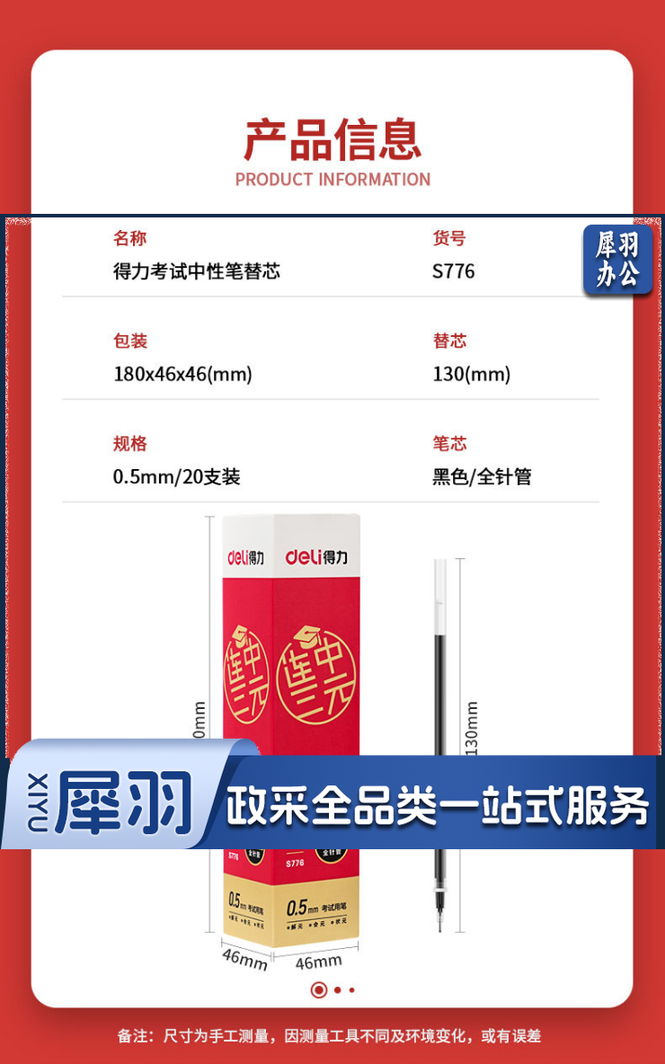 得力S776考试中性笔替芯0.5mm全针管(黑)
